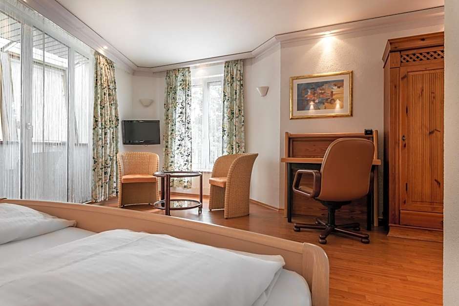 The room features satellite TV, a seating area, and has an private bathroom with a hairdryer and complimentary toiletries. Some rooms also have a balcony or conservatory.